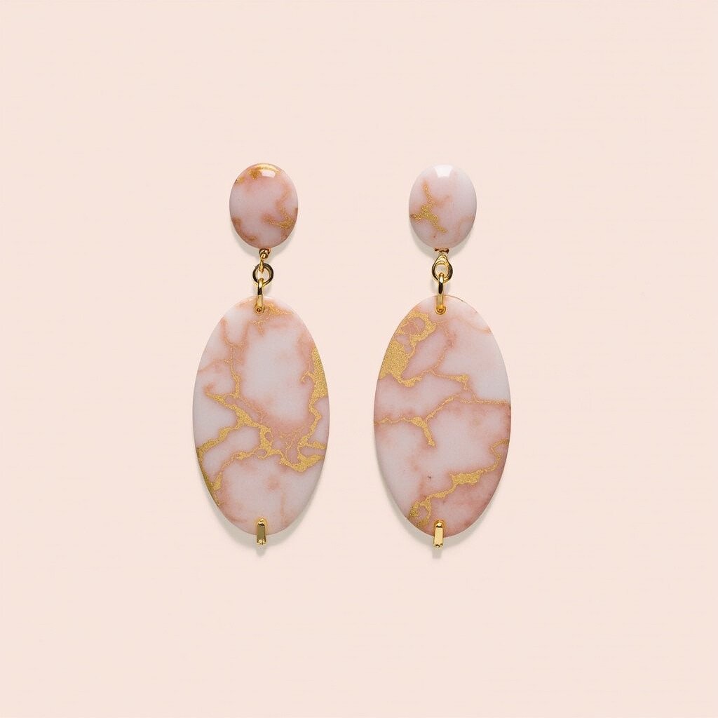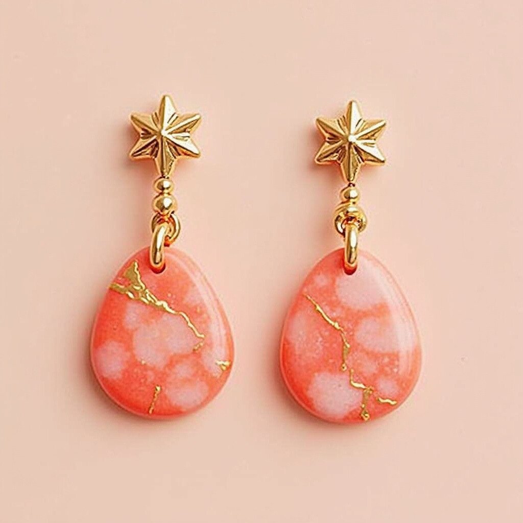 Coral marble earrings with gold foil are refreshing and lively. They’re like a beach breeze on a summer day.