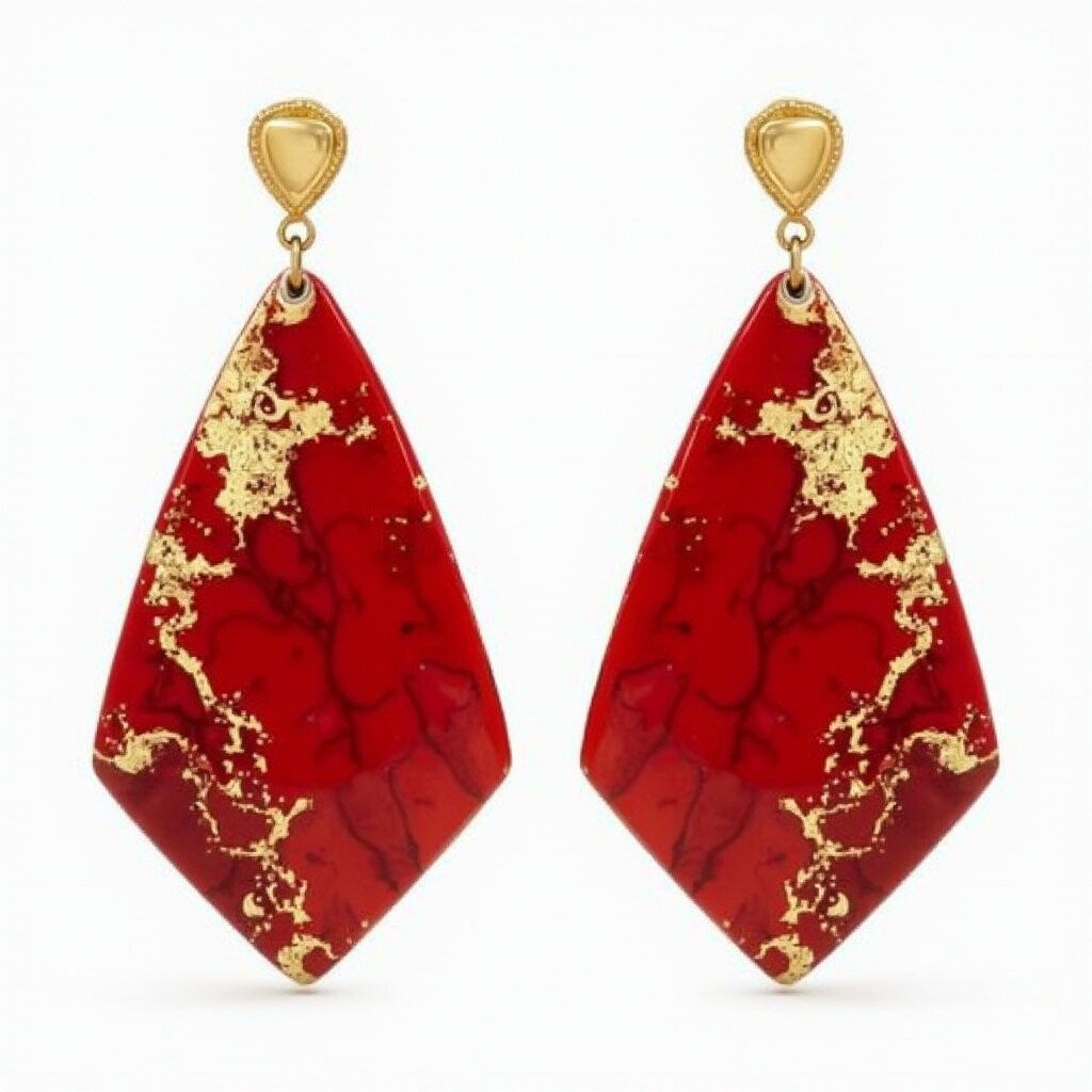 Red marble earrings with gold foil are bold and passionate. They’re perfect for those who love making a statement.