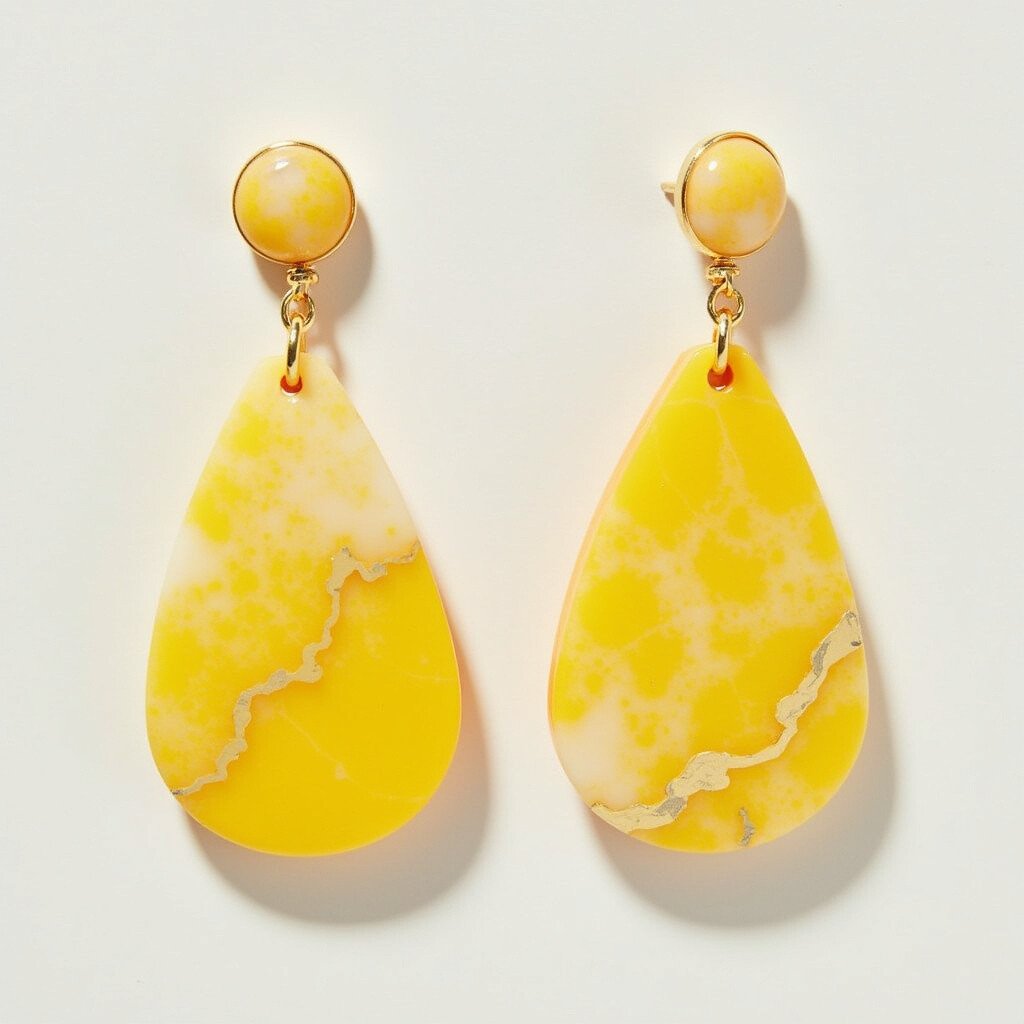 Brighten up your day with yellow marble earrings adorned with gold foil. They’re like little drops of sunshine.