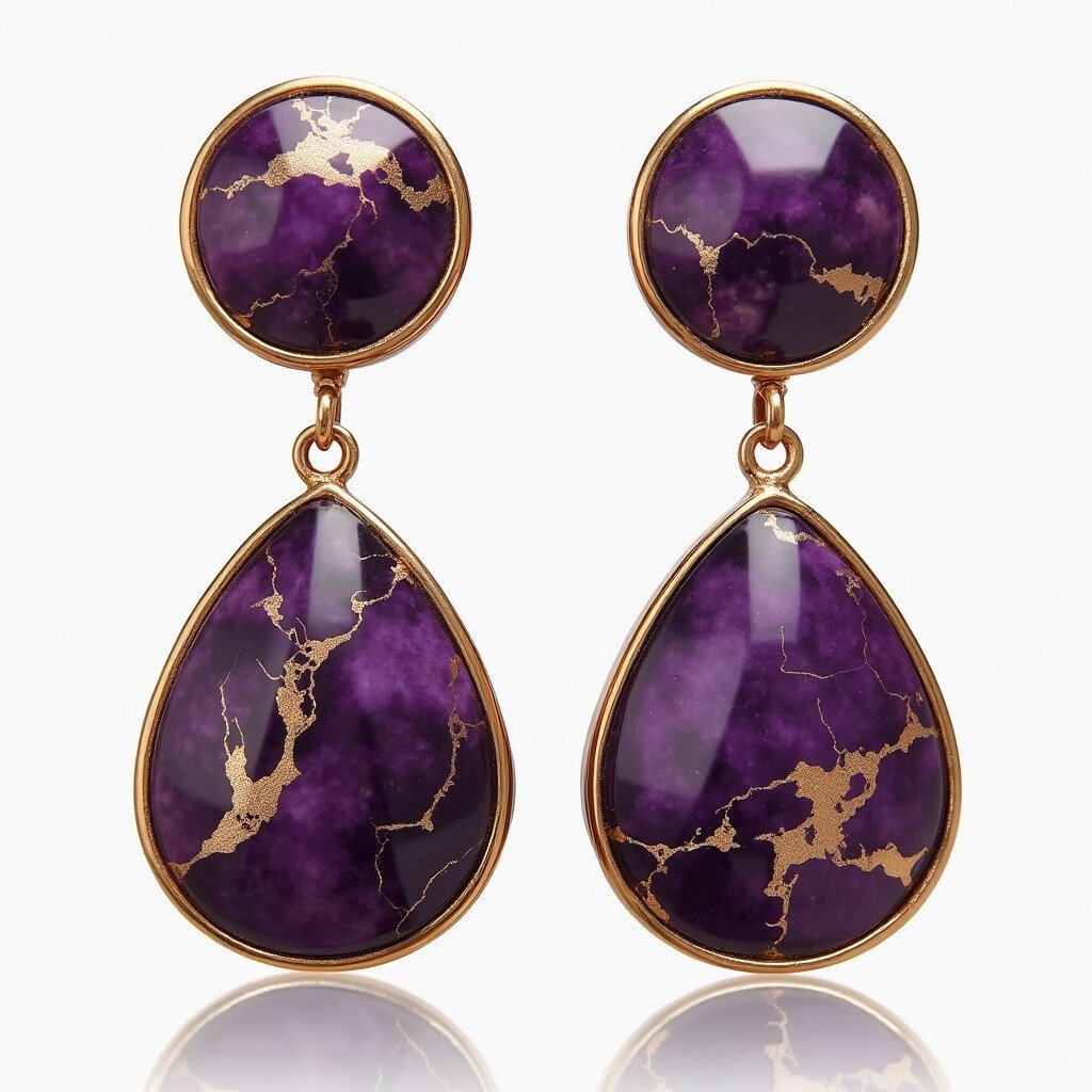 Purple marble earrings with gold foil evoke a sense of royalty and sophistication. They’re perfect for making a bold statement.