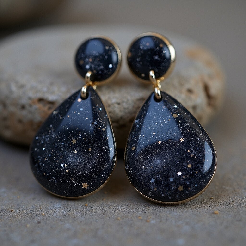Imagine wearing the universe on your ears. These galactic marble earrings feature deep blacks and shimmering silvers, reminiscent of the night sky. They’re perfect for anyone who loves a bit of mystery and magic.