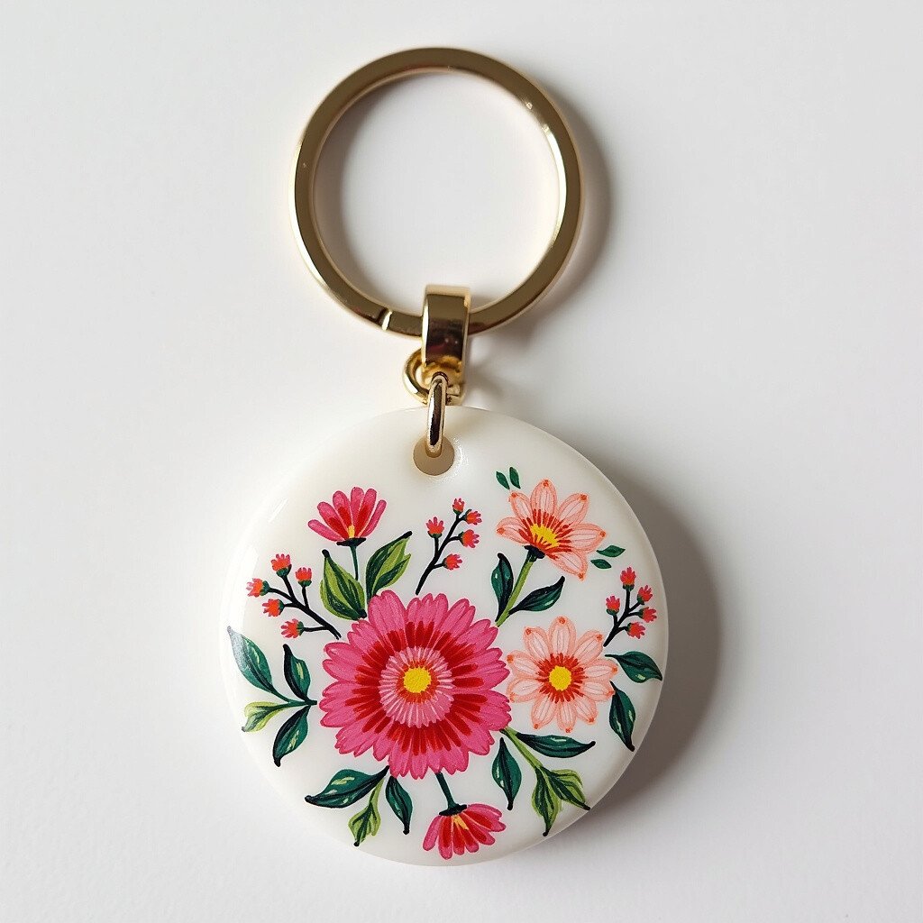 Bright and cheerful, floral patterns never go out of style. Hand-painted flowers on a marble keychain can brighten your day.