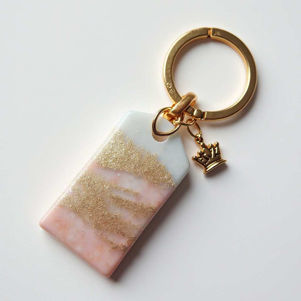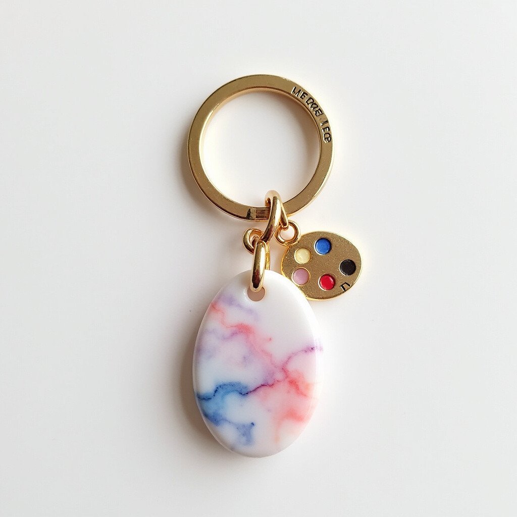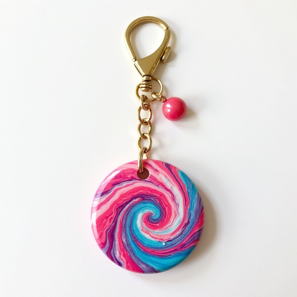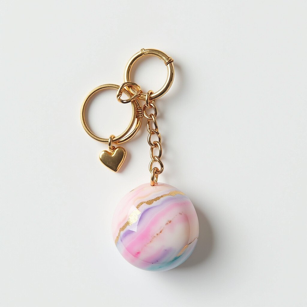 Soft pastels create a calming effect on a marble keychain. Think soft pinks, blues, and yellows that blend seamlessly together.
