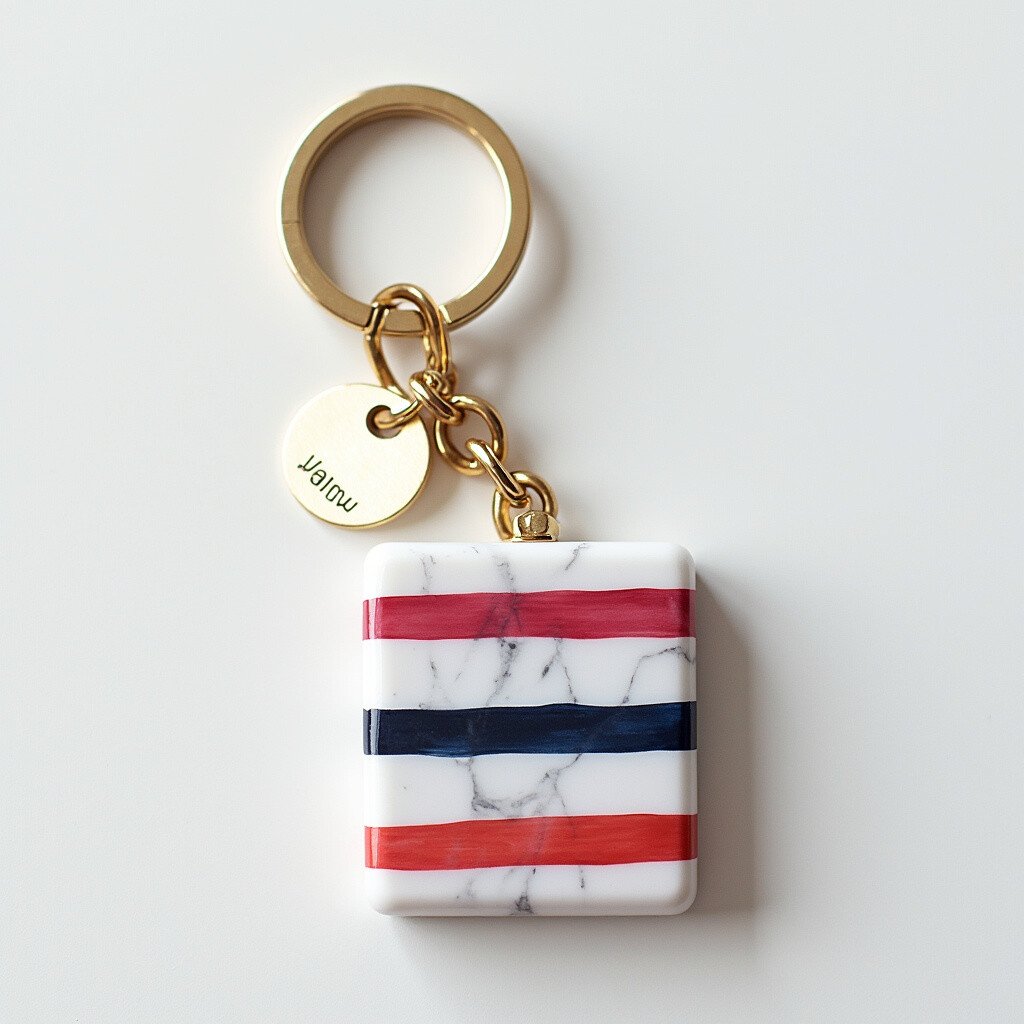 Classic yet trendy, bold stripes on a marble keychain create a striking look. Choose your favorite colors for a personal touch.