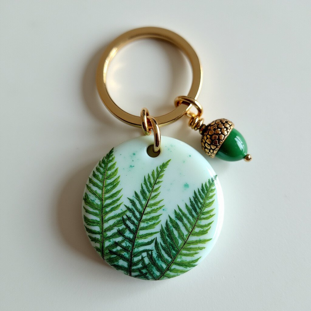 The greenery of a forest can be captured on a marble keychain with delicate fern patterns. This design is perfect for nature lovers.
