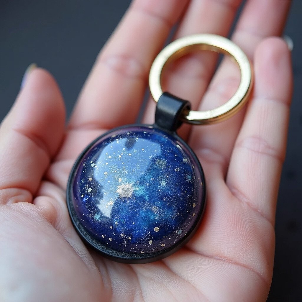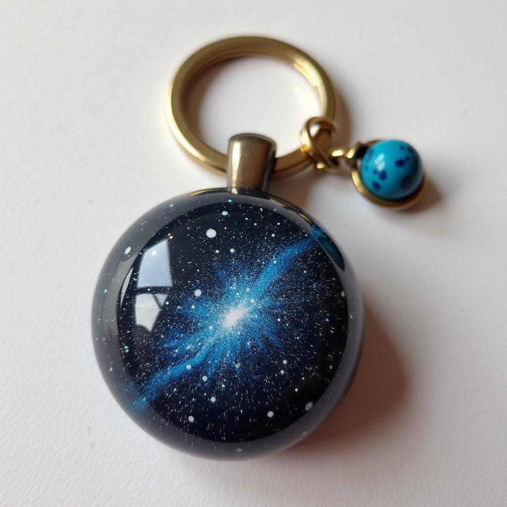 For those who gaze at the stars, a galaxy-themed keychain is a dream come true. Swirling blues and purples with hints of silver make for a cosmic design.