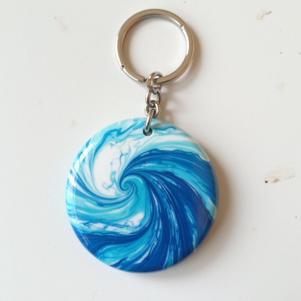 Imagine carrying the ocean in your pocket. A hand-painted marble keychain with swirling blue and white waves captures the essence of the sea. It’s perfect for anyone who loves the beach.