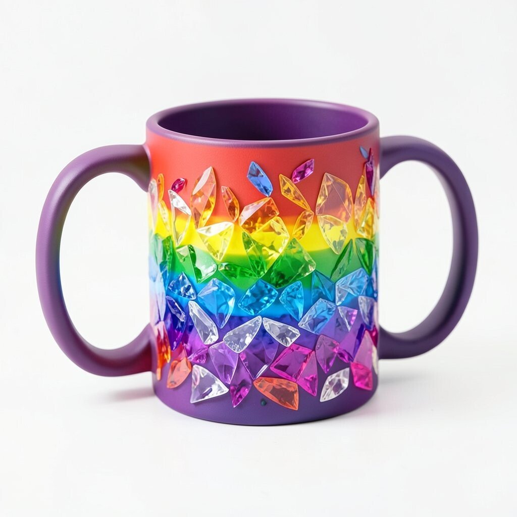 Why settle for one color when you can have them all? A rainbow mug with a crystalline effect is perfect for those who love vibrant, joyful designs.