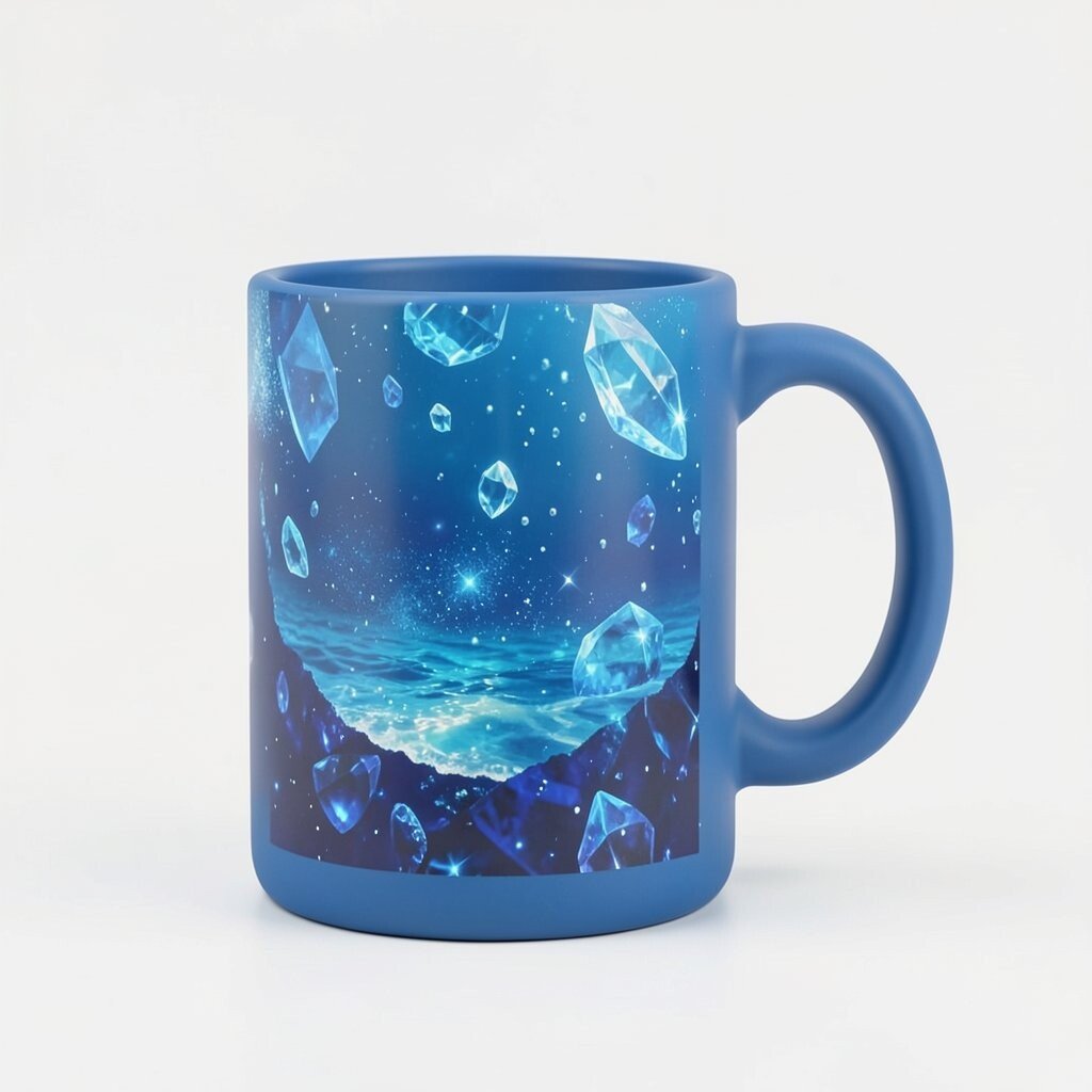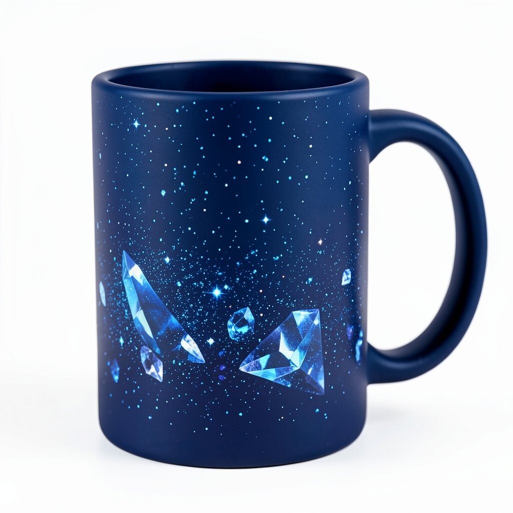 For those who love the allure of the night, a midnight blue mug with a crystalline effect is simply mesmerizing. This design evokes the mystery and beauty of a clear, starry sky.