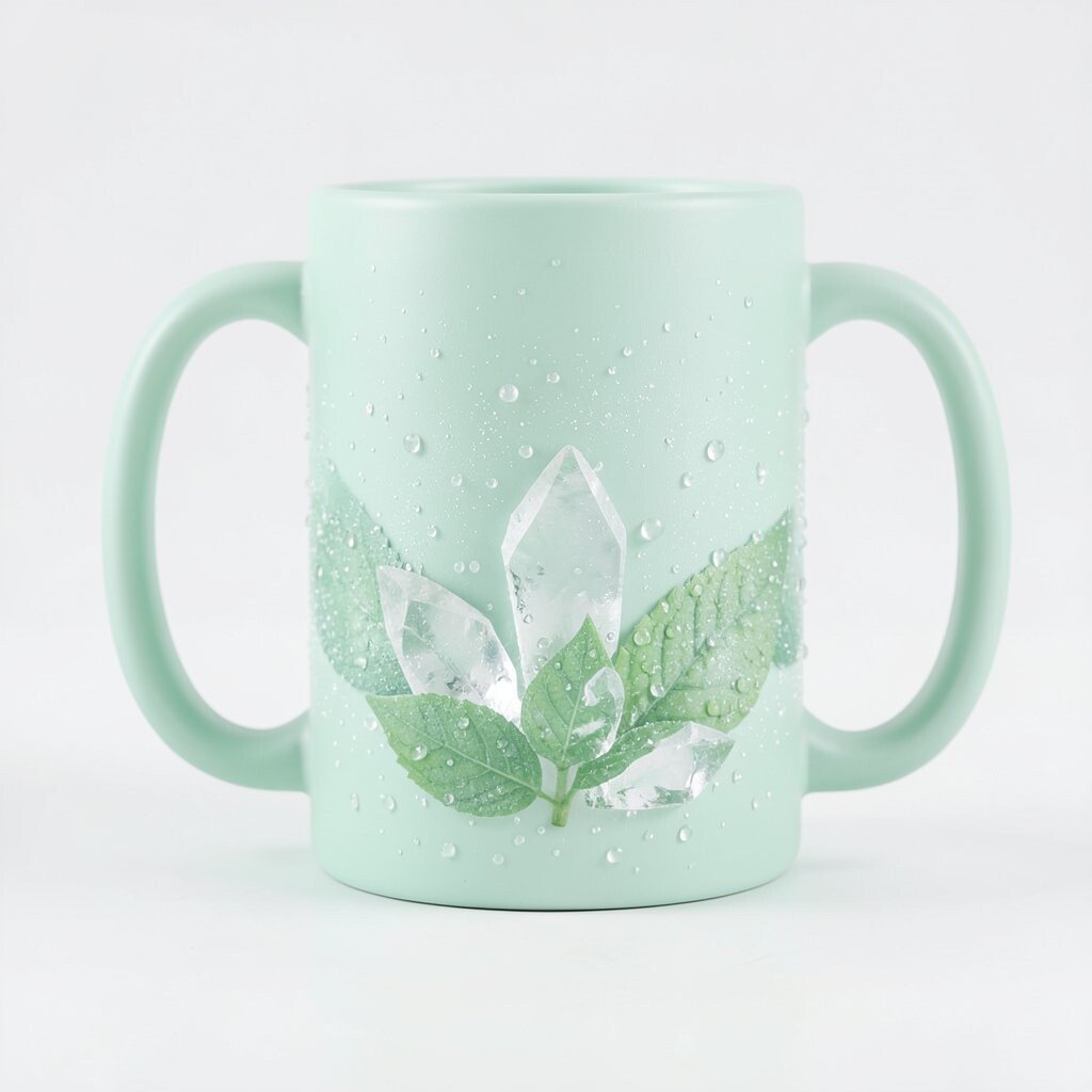 Mint is a refreshing and soothing color, perfect for a mug that feels both cool and inviting. With a crystalline effect, it looks like fresh dew on mint leaves.