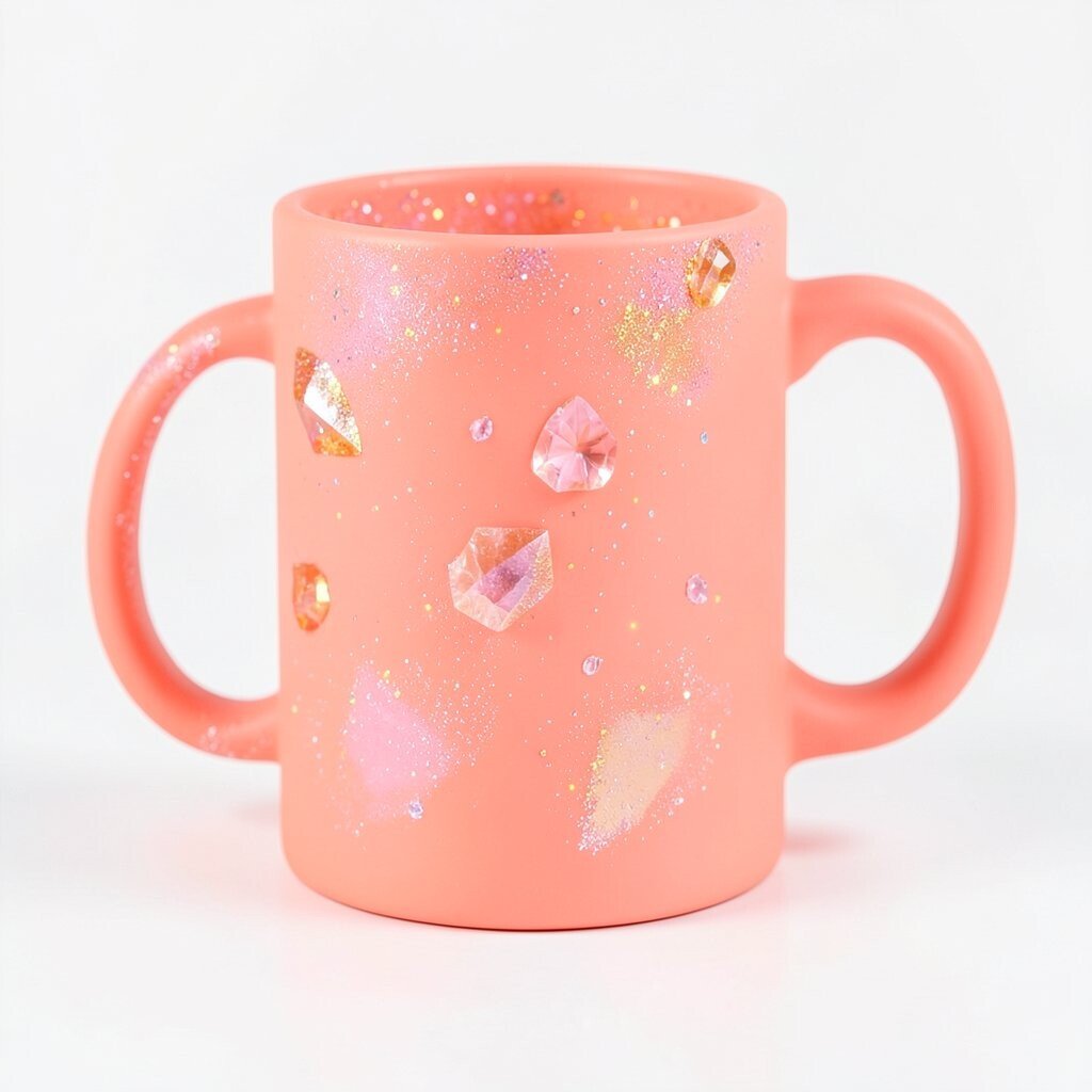 Coral is a beautiful blend of pink and orange, making it a unique and charming choice for a mug. With a crystalline effect, it looks even more delightful.