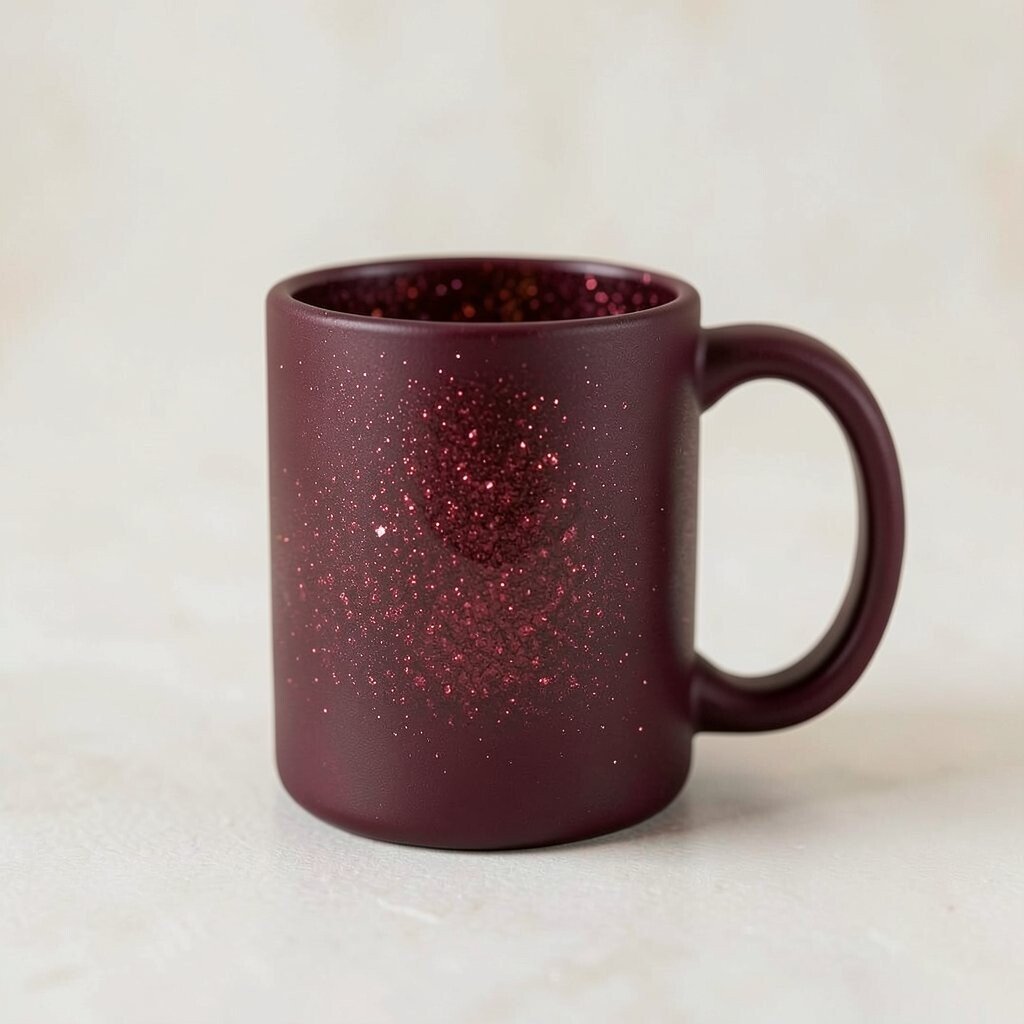 Opt for a rich, deep red base and add a shimmering effect to create a striking design. This mug is perfect for those who love bold colors and want to make a statement. Red mugs are often available in various shapes and sizes, offering plenty of customization options.