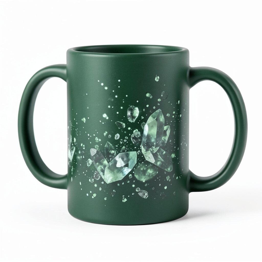 Green is known for its calming properties, and a forest green mug with a crystalline effect is like holding a piece of nature. This design is great for nature lovers and those who find peace in greenery.