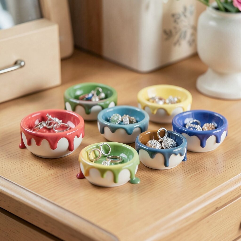 These tiny drippy dishes are perfect for holding your rings and earrings. They keep your jewelry organized and add a touch of elegance to your dresser.