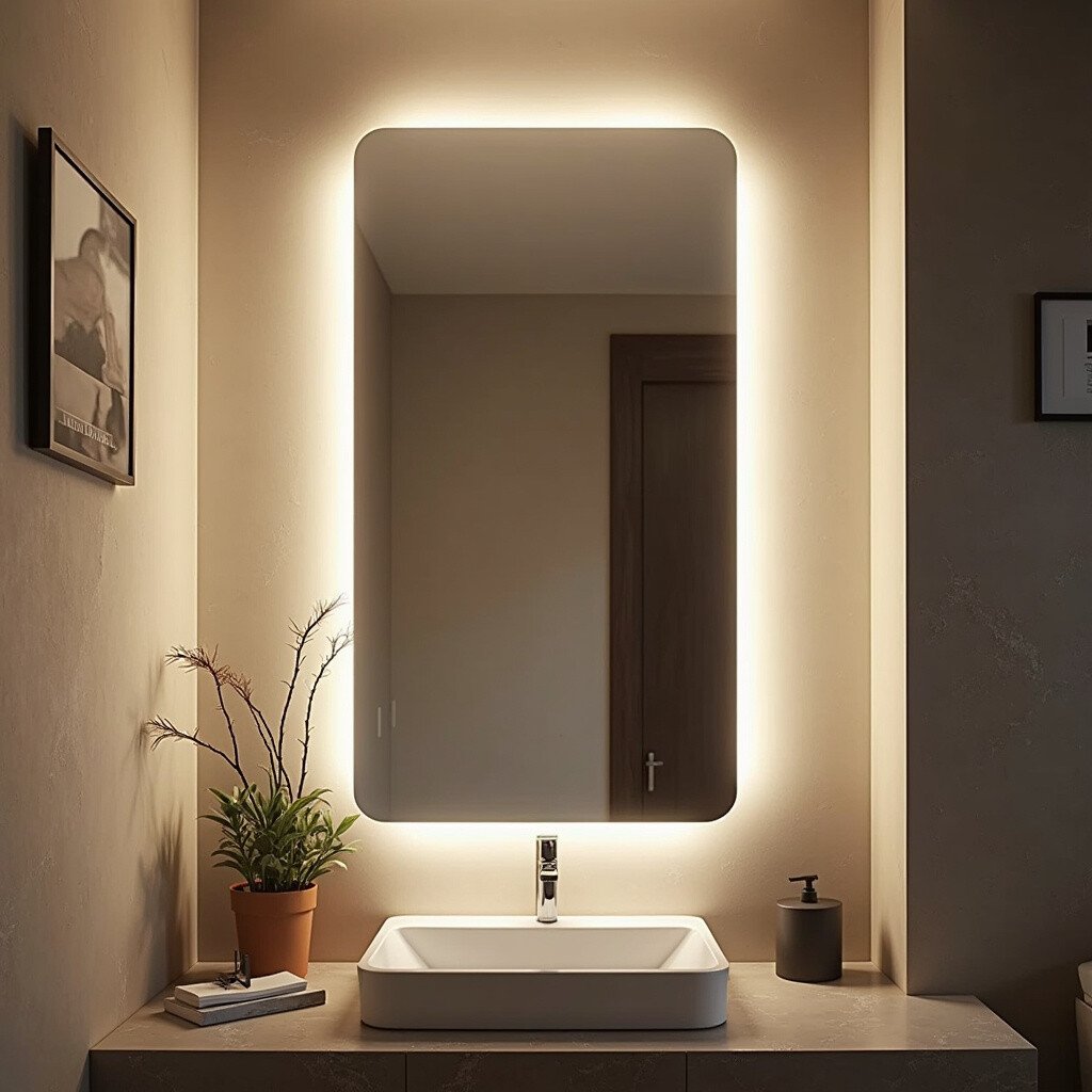 Light up your space with an LED backlit mirror. This idea is perfect for modern homes seeking a touch of glamour.