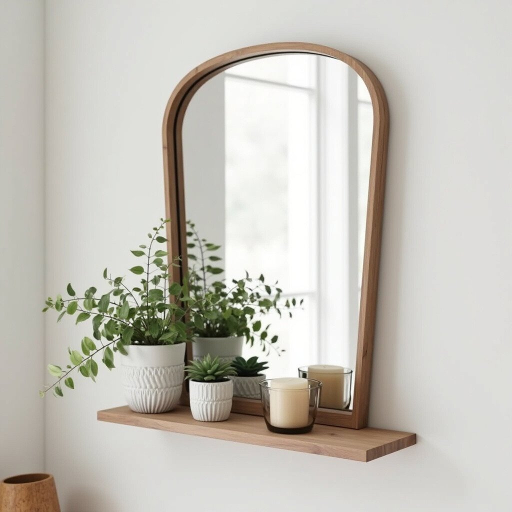 Add functionality with a mirror that doubles as a shelf. This idea is great for small spaces or minimalist homes.