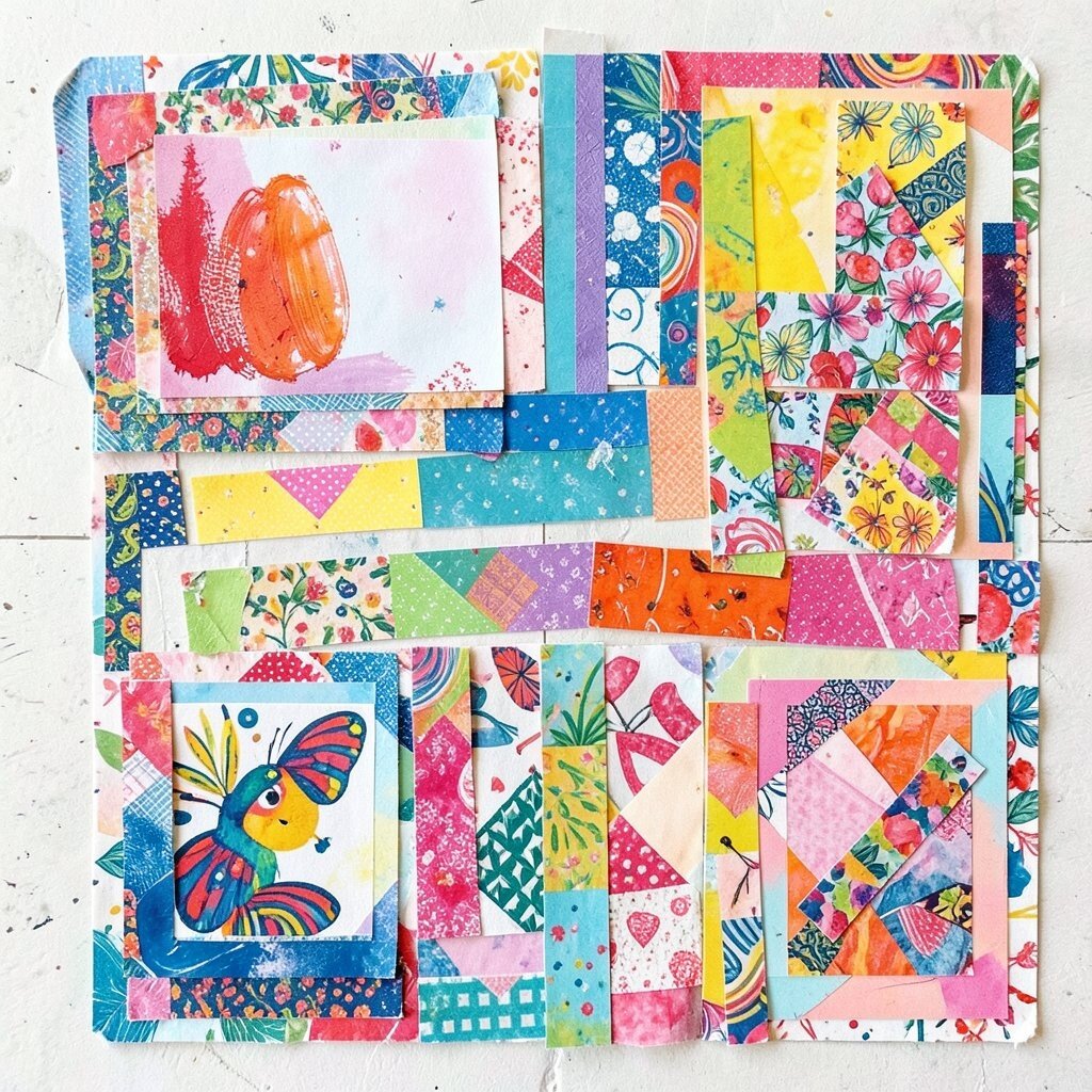 Fabric scraps can turn your collage into a tactile adventure. Mix patterned fabrics with different textures for a vibrant, touchable masterpiece. This is where fashion meets art in the most delightful way.