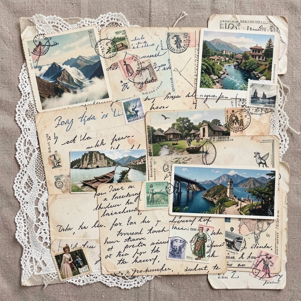 There’s a certain charm to old postcards that whispers stories from the past. Combine them with lace, stamps, and handwritten notes to create a piece rich in nostalgia. This makes a perfect gift for a history lover or a traveler at heart.