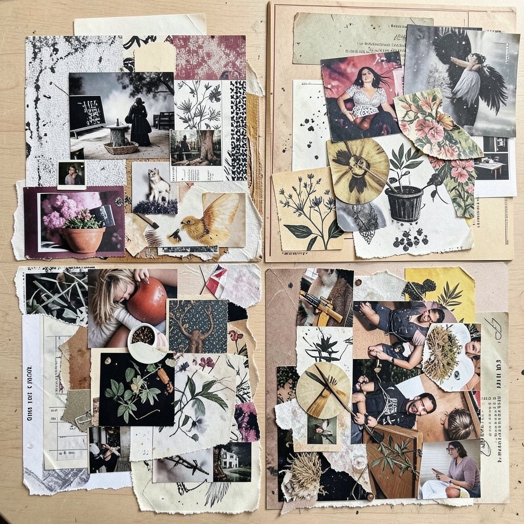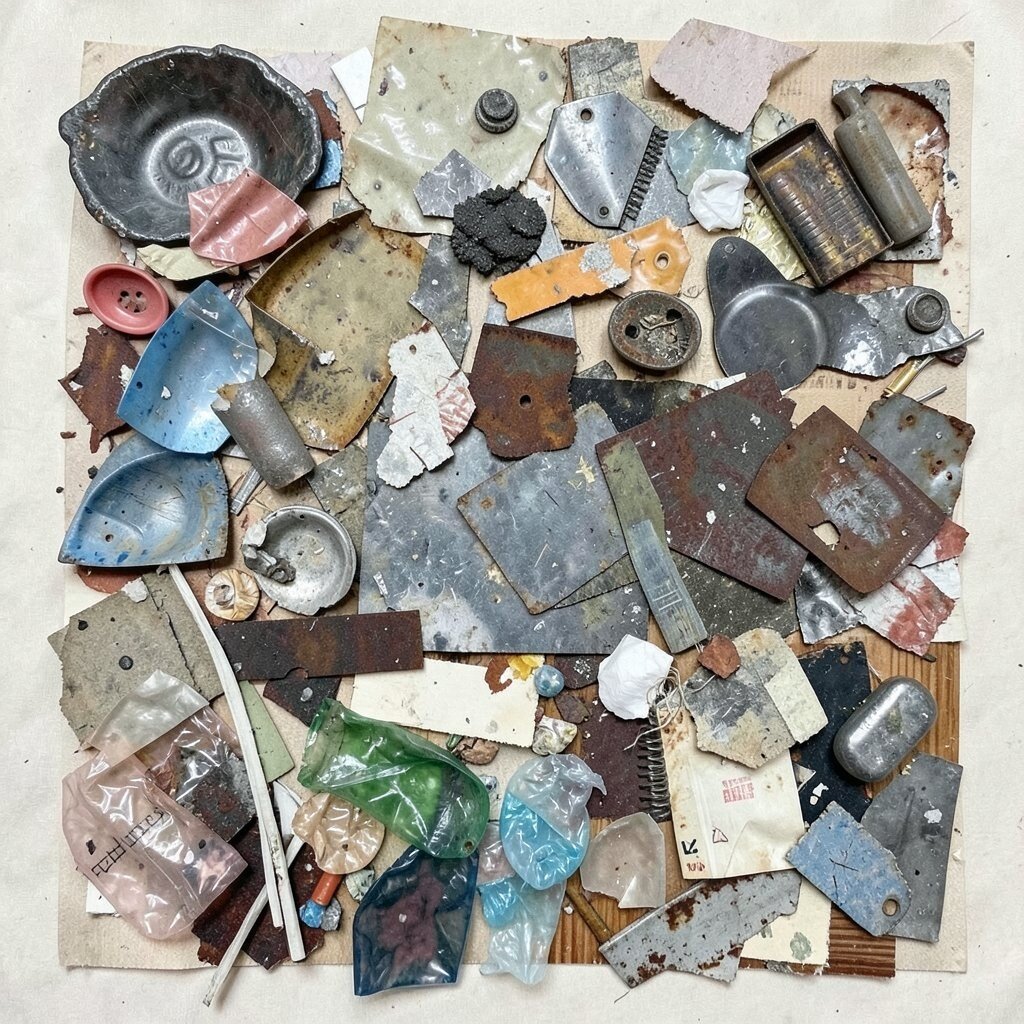 Give new life to materials like plastic or metal scraps. These unusual elements can add an industrial or eco-friendly vibe to your collage. It’s art with a conscious twist.