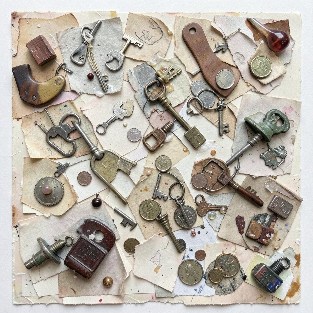 Incorporate everyday objects like keys, coins, or small trinkets into your collage. These items add interest and tell a story. It’s like turning your life into art.