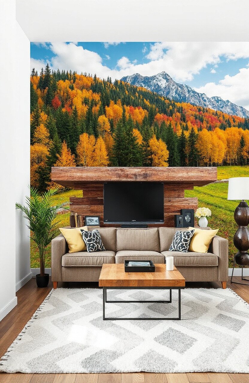 An oversized wall mural can turn a plain wall into a masterpiece. Picture a giant, colorful forest or a dreamy skyline stretching across your living room.