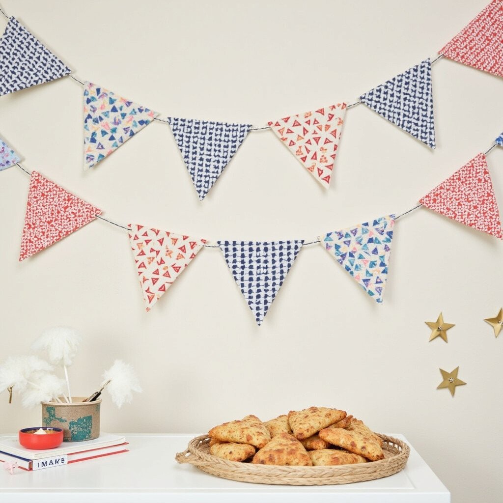 Bunting is versatile and easy to make. It can be reused for parties or as permanent decor in a room. Choose patterns that match your theme and watch your space transform.