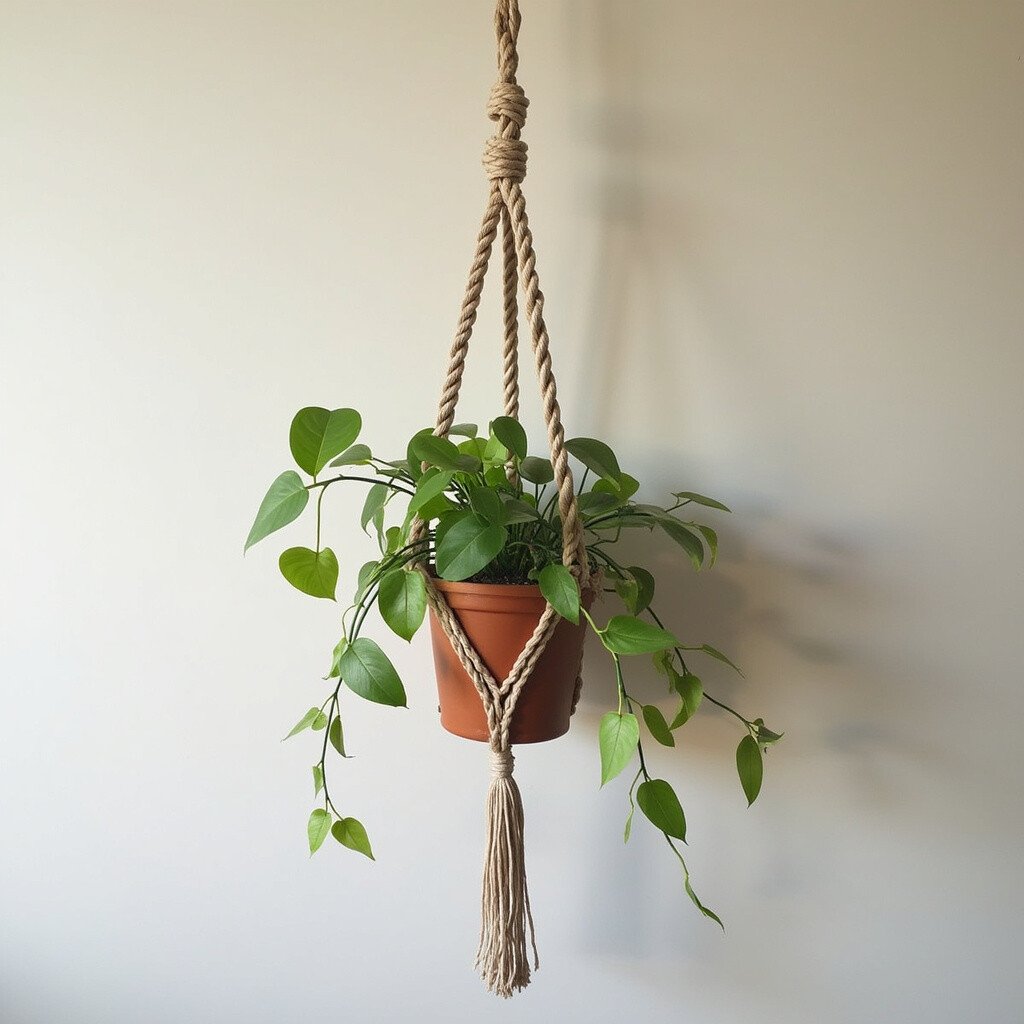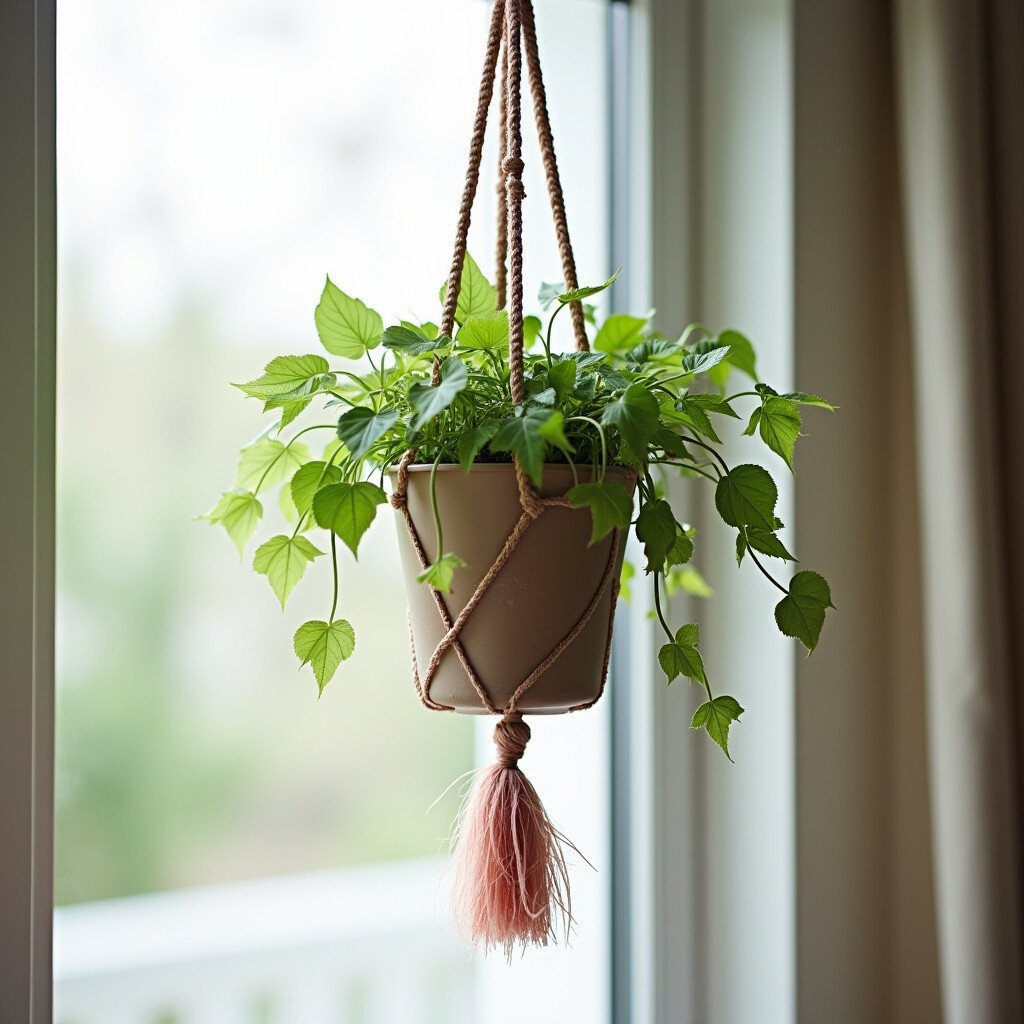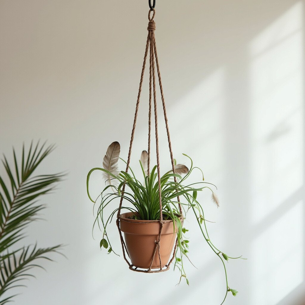 Imagine a macramé plant hanger adorned with soft, colorful feathers. This bohemian-style hanger is perfect for anyone who loves a relaxed, artsy vibe. The feathers sway gently with the breeze, adding movement and life to your space.