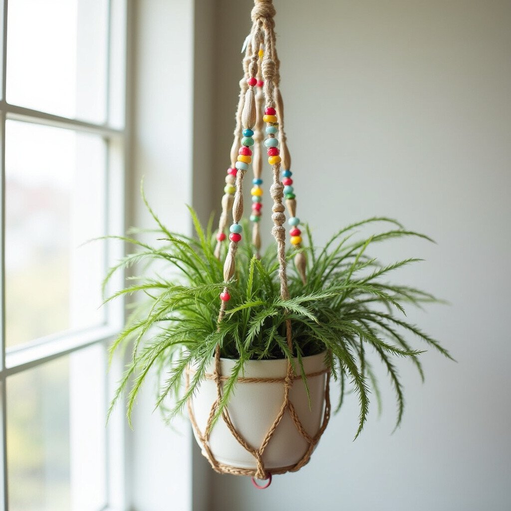 7. Feather and Bead Plant Hanger