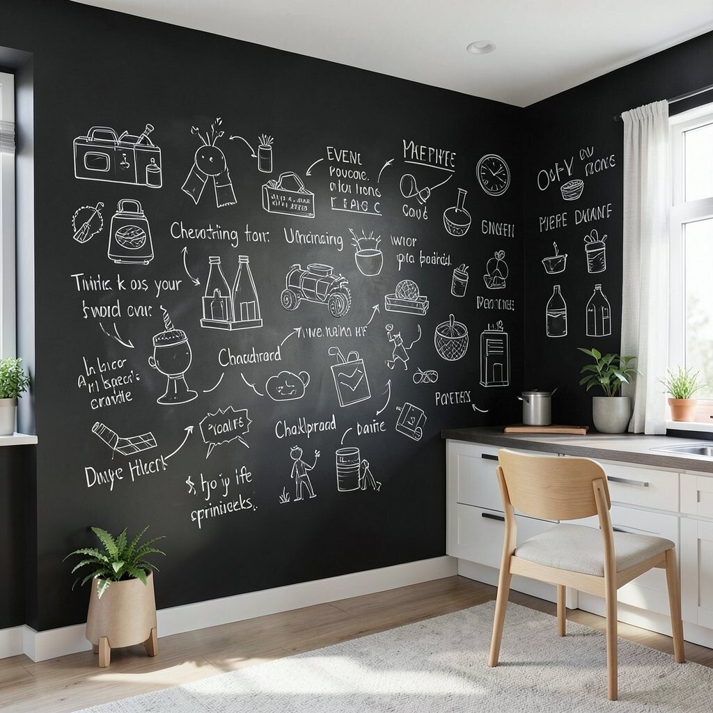Chalkboard walls are both functional and fun. Paint a section of your wall with chalkboard paint and use it for notes, drawings, or as a creative outlet. It’s perfect for kitchens, playrooms, or offices.