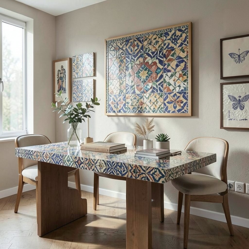 This art form is timeless and adds elegance to any room. Play with different tile sizes and colors to create unique designs. It’s also a great way to upcycle broken tiles or ceramics.
