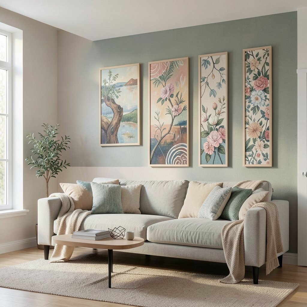 Add softness and color to your walls with fabric wall panels. Stretch fabric over frames and hang them as you would a painting. They are a stylish alternative to traditional wall art.