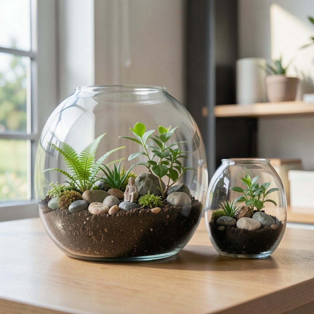 Terrariums are miniature gardens that bring a touch of nature indoors. Use glass containers, soil, rocks, and small plants to create your own little ecosystem. They’re perfect for adding greenery without taking up much space.