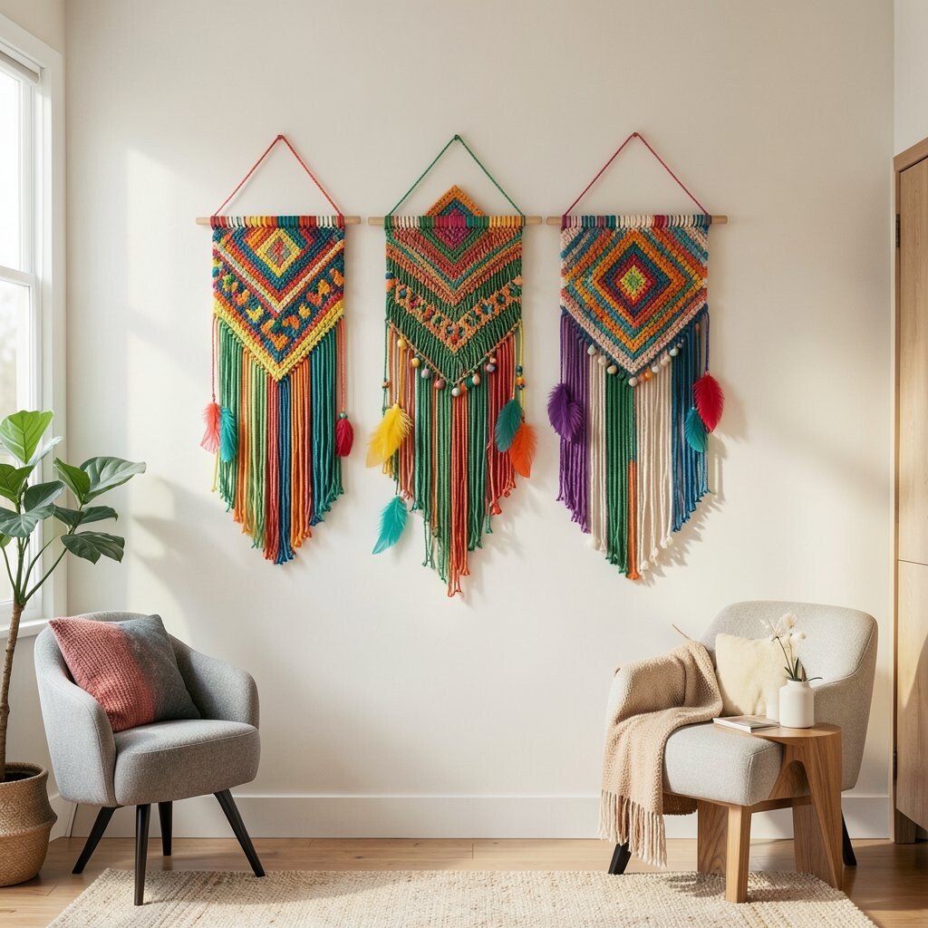 Macramé wall hangings offer a bohemian vibe to any room. They are made by knotting cords in patterns to create beautiful designs. These hangings are perfect for adding texture and warmth to bare walls.