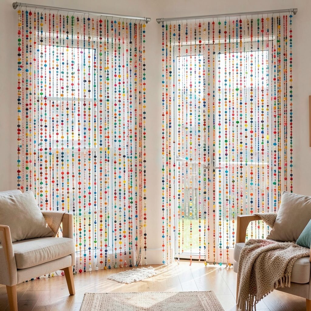 These curtains can be as simple or intricate as you like. Mix different bead sizes and colors for texture and interest. They offer an eclectic vibe that suits both modern and bohemian styles.