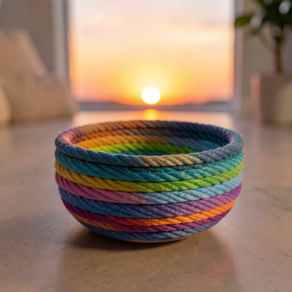 Picture a sunset captured in a bowl! The ombre effect is all about colors blending seamlessly. Start with a plain rope and gradually dye it into different shades of your favorite color.