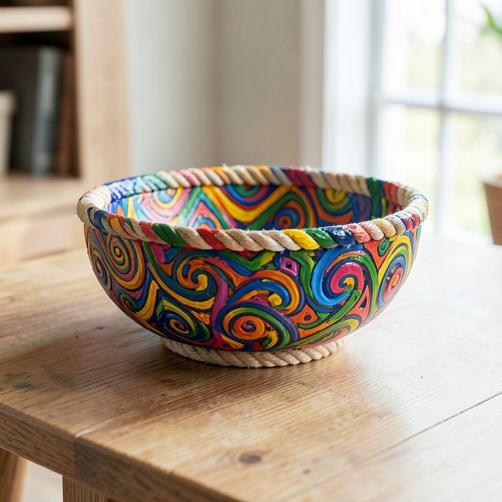 Unleash your inner artist by painting your rope bowl. Use acrylic paints to create anything from abstract designs to intricate patterns.