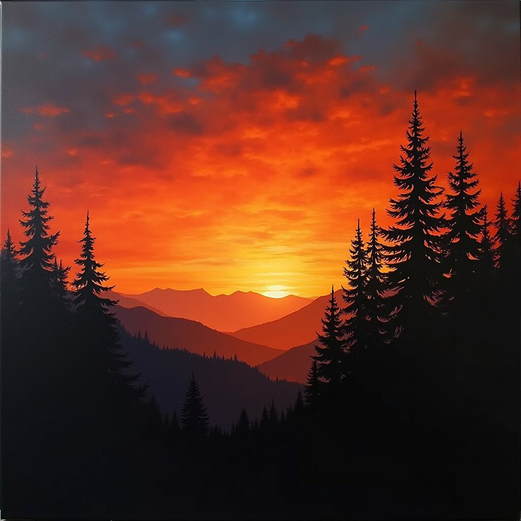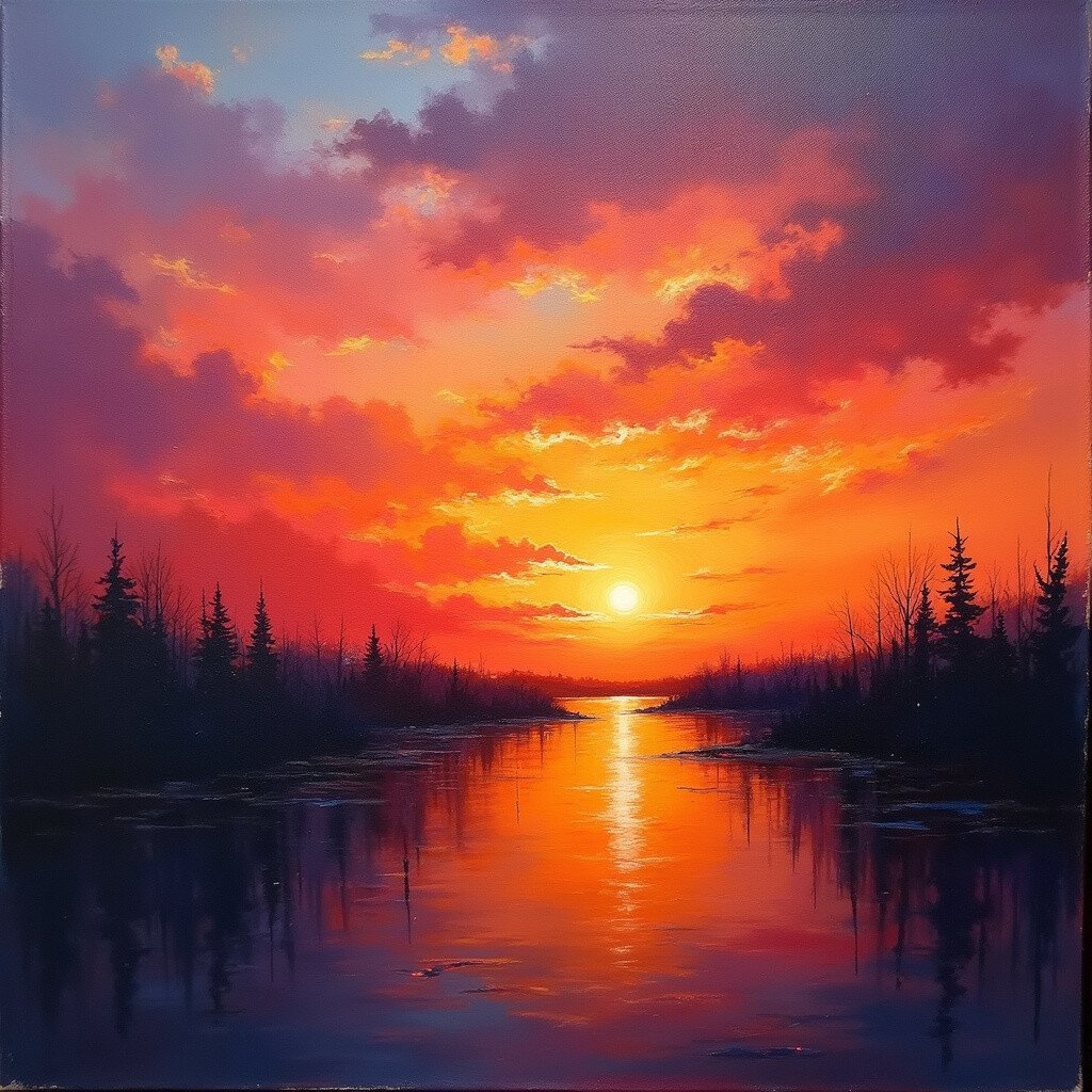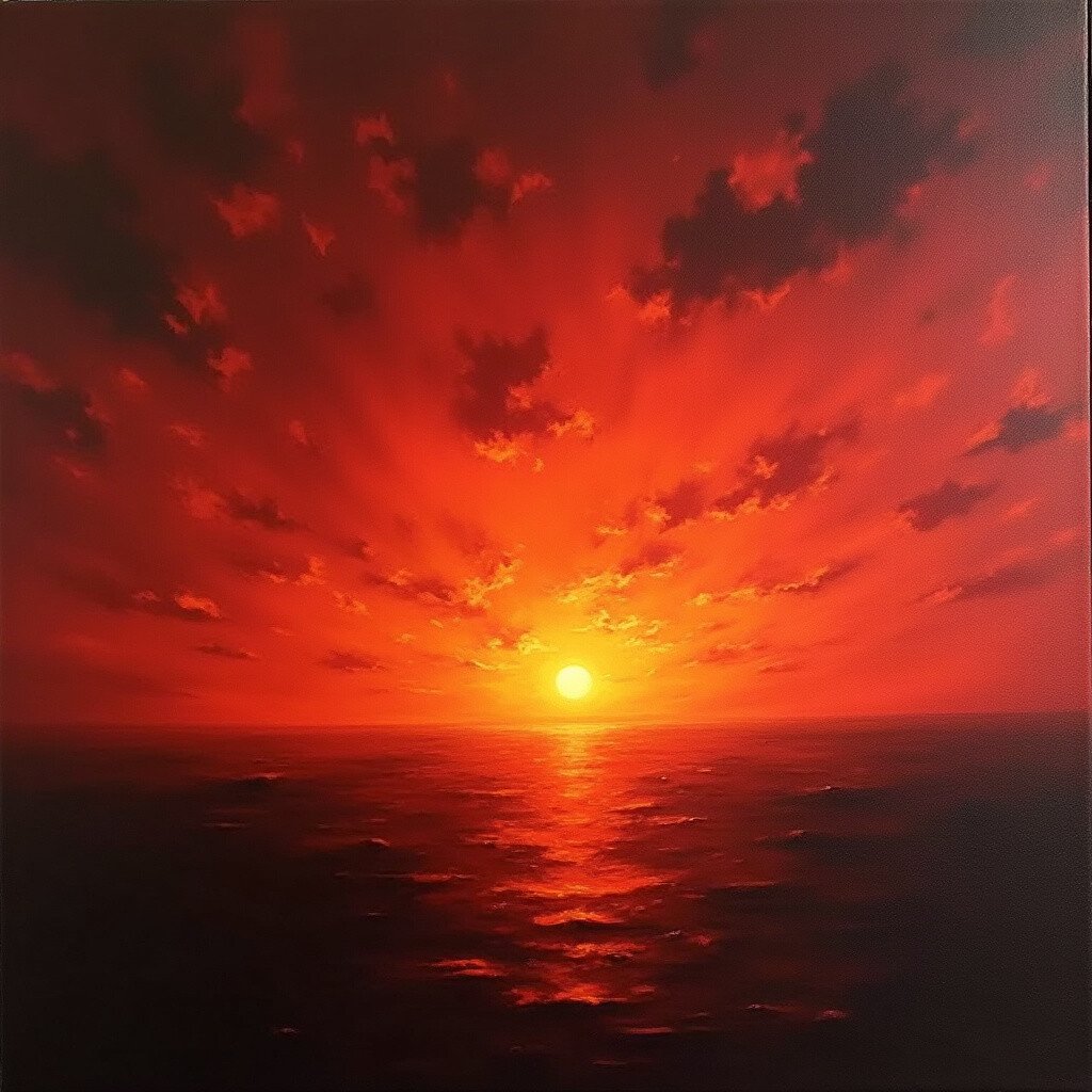 Imagine capturing the intensity and passion of a fiery red sunset on canvas. This idea focuses on bold and striking colors.