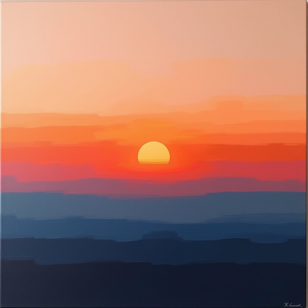 Abstract sunsets are vibrant and full of energy. Use bold strokes and experiment with different color combinations. This style is perfect for adding a pop of color to contemporary spaces. Plus, it’s a fun way to express your creativity without any rules!