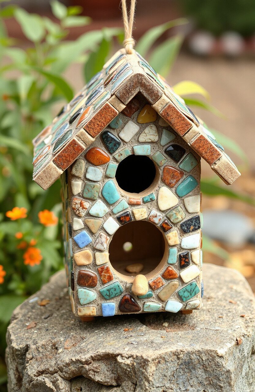 Invite feathered friends to your yard with a mosaic birdhouse. These charming little homes are not only functional but also beautiful garden accessories.