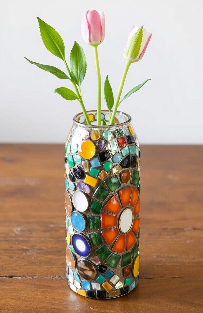 Mosaic vases are a great way to recycle old glassware. They’re affordable to make and add a touch of elegance to any space.