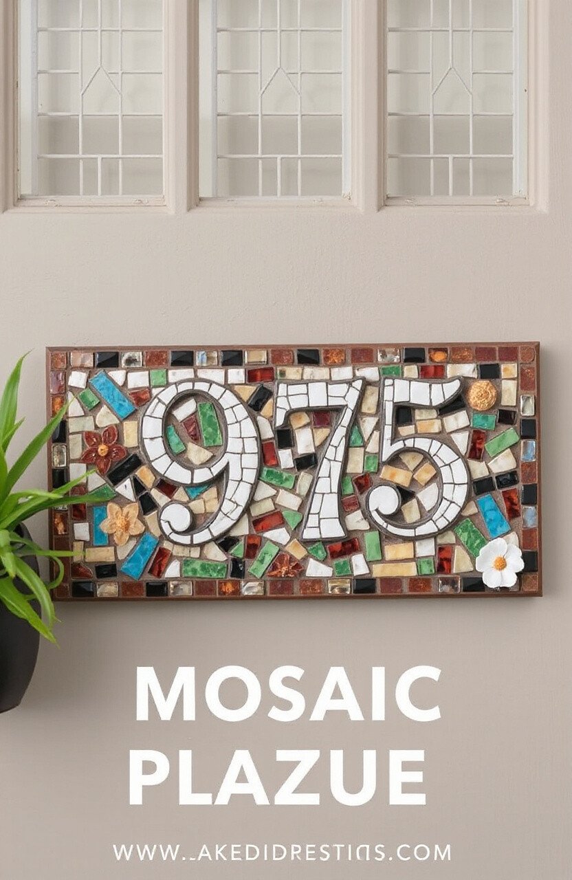 Welcome guests with a personalized mosaic address plaque. It’s a lovely way to display your house number with style.