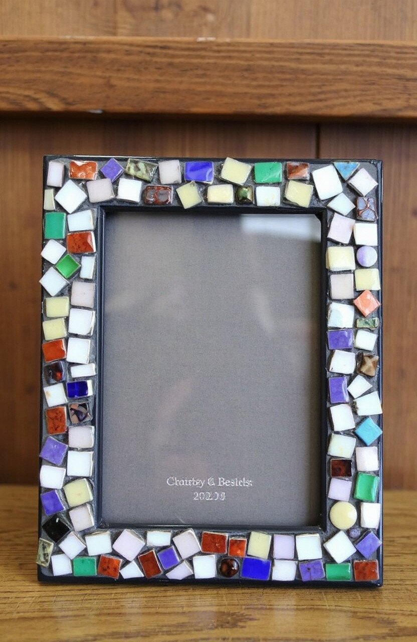 A mosaic picture frame makes a beautiful gift or keepsake. The best part? It’s affordable and can be done with leftover tiles or glass pieces.