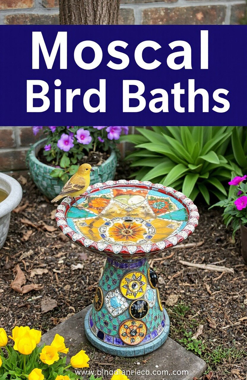 Use colorful tiles to create intricate designs. The vibrant colors will attract birds and add charm to your yard.