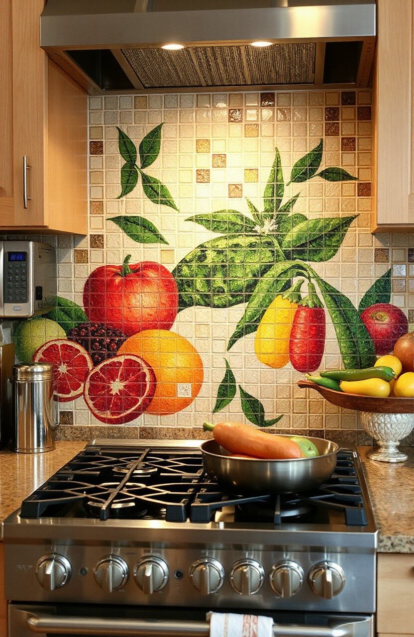 Transform your kitchen with a backsplash that’s not just functional but a work of art. Think of a mural of fruits, vegetables, or abstract patterns that make cooking a more delightful experience. A mosaic backsplash can instantly become the focal point of your kitchen.