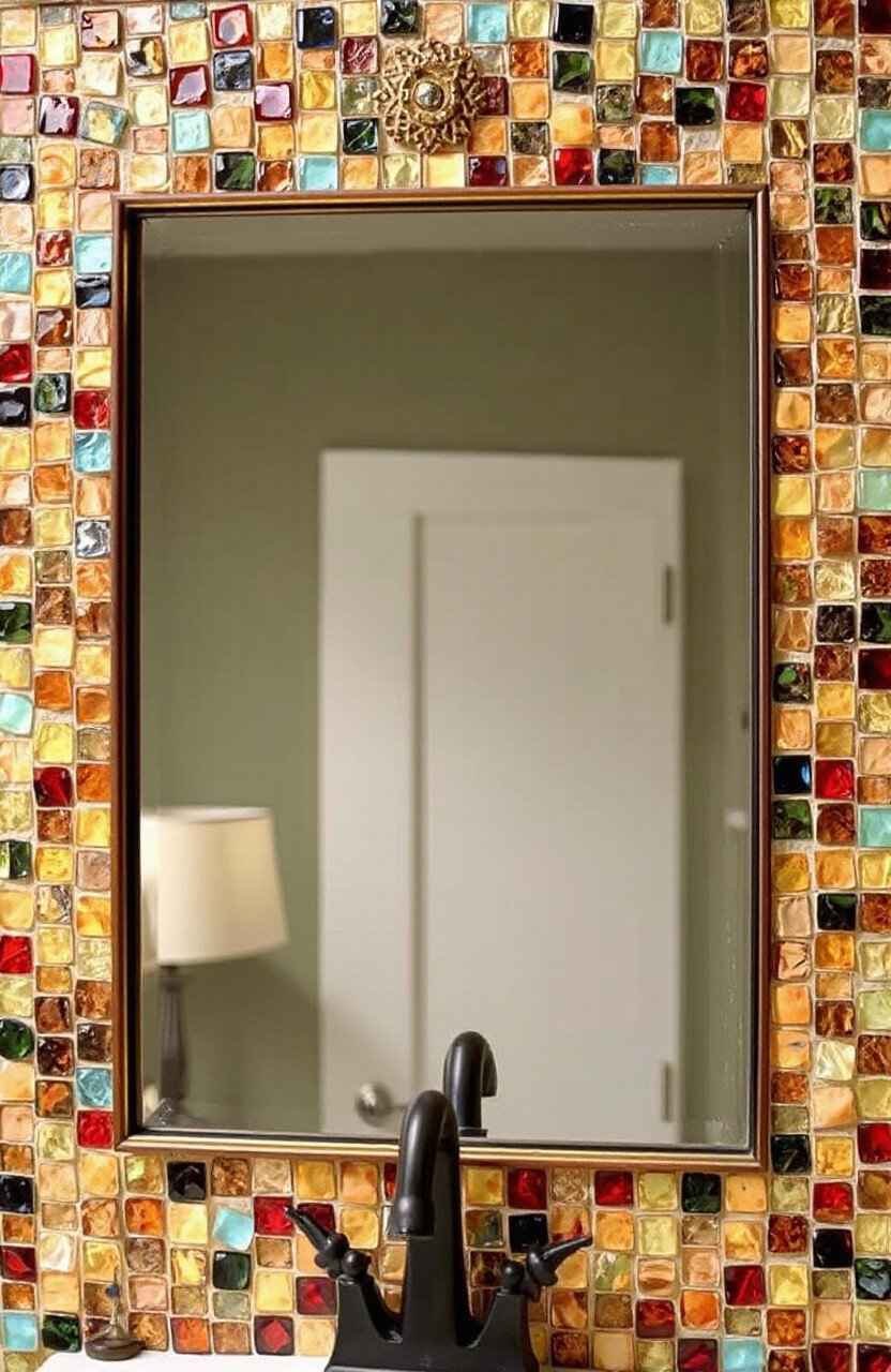 Turn a simple mirror into a magical looking glass with a mosaic tile frame. Imagine glancing at your reflection surrounded by a burst of colors and patterns. This idea adds a touch of fantasy to your daily routine.