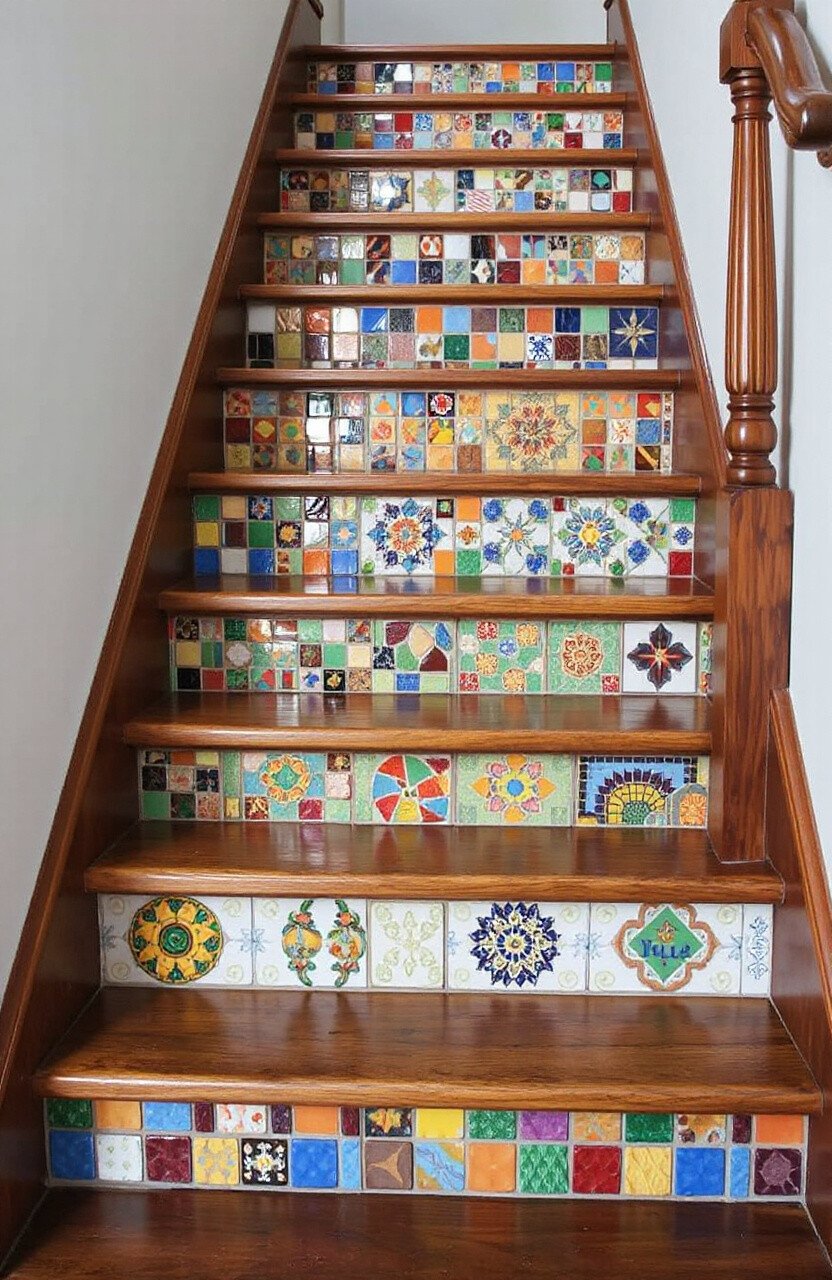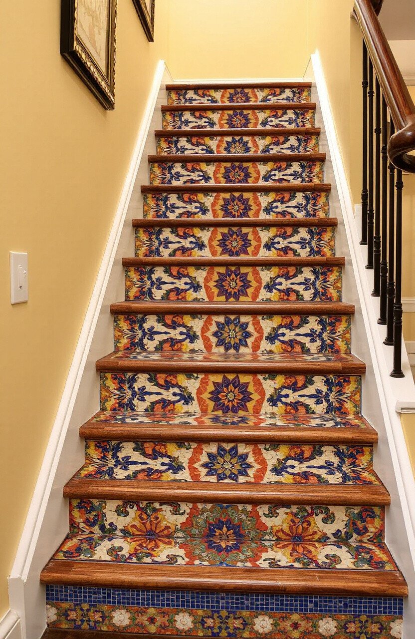 Envision each step up your staircase telling a different story. By adding mosaic tiles to the risers, you can create a colorful journey from one floor to the next. It’s like walking through a gallery of art every day.