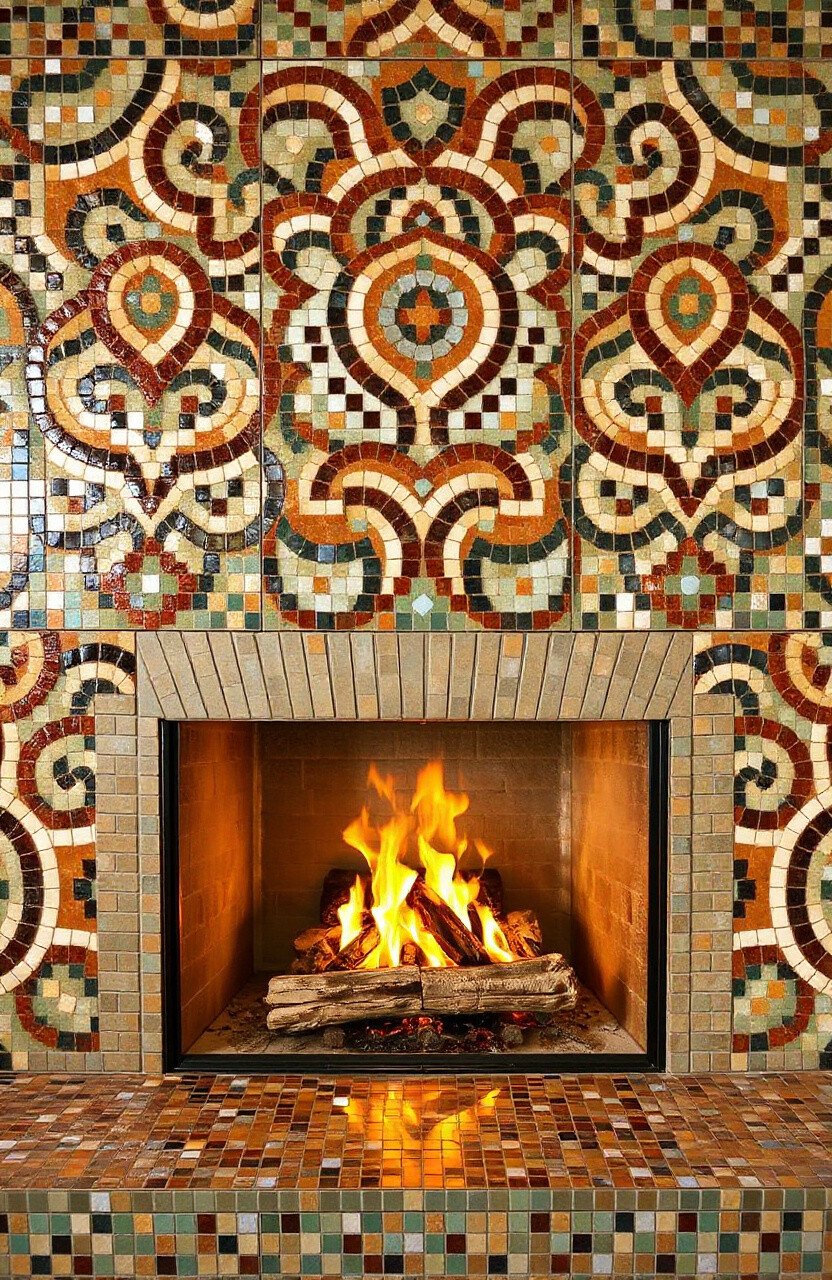 Envision a fireplace that’s as warm in design as it is in function. By incorporating mosaic tiles into the surrounding area, you create a cozy but elegant centerpiece for your living room. The patterns can evoke flames or other natural elements.