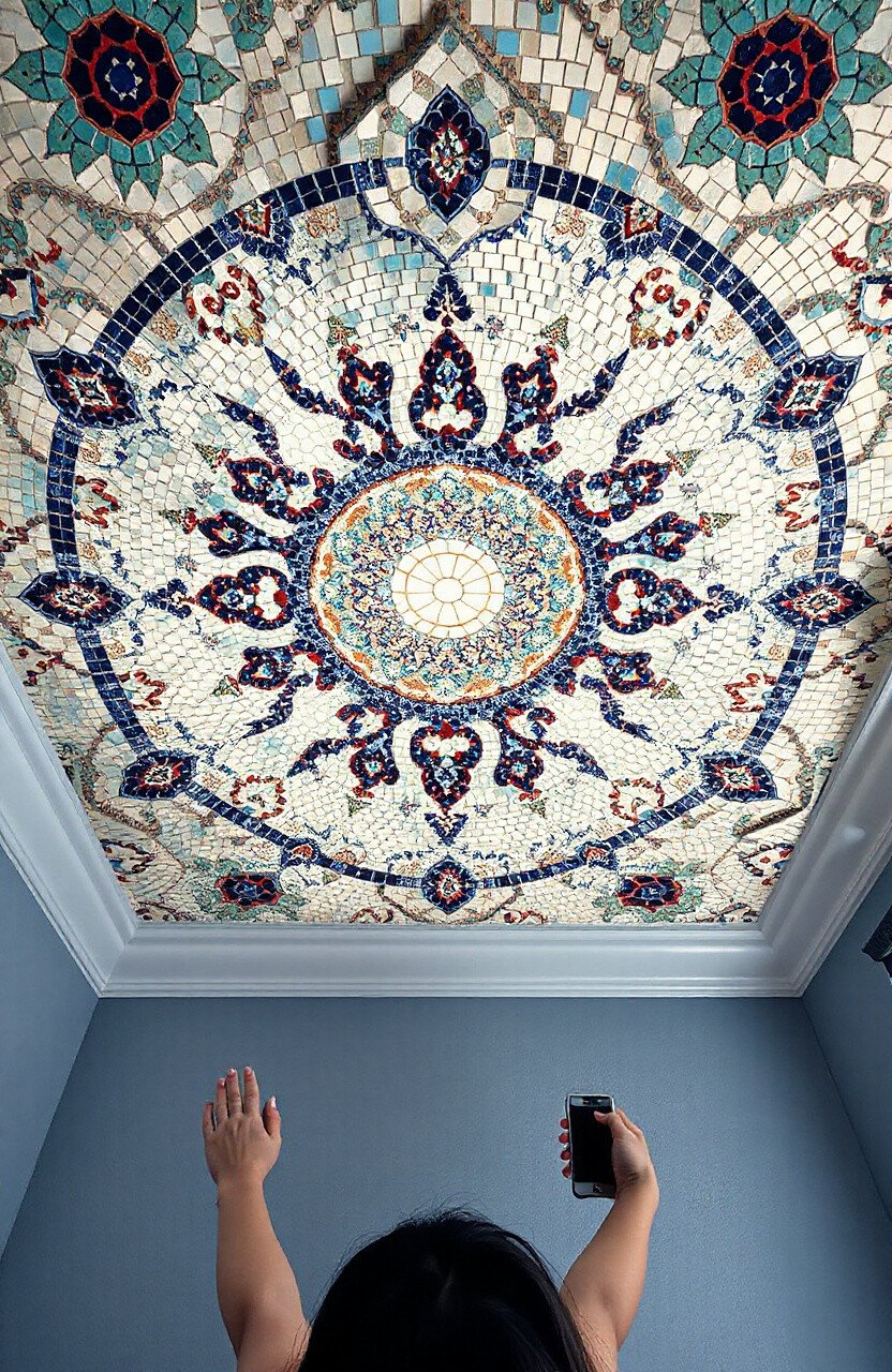 Imagine lying down and looking up at a ceiling that’s a work of art. By using mosaic tiles, you can create a stunning design that draws the eye upward. This can transform any room into a magical space.