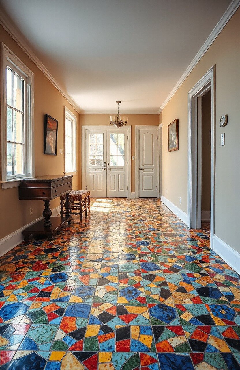 Picture a floor that dances with colors and patterns, turning every step into a delightful experience. Mosaic tile floors can add vibrancy and energy to any space. This is perfect for areas like entryways or sunrooms.