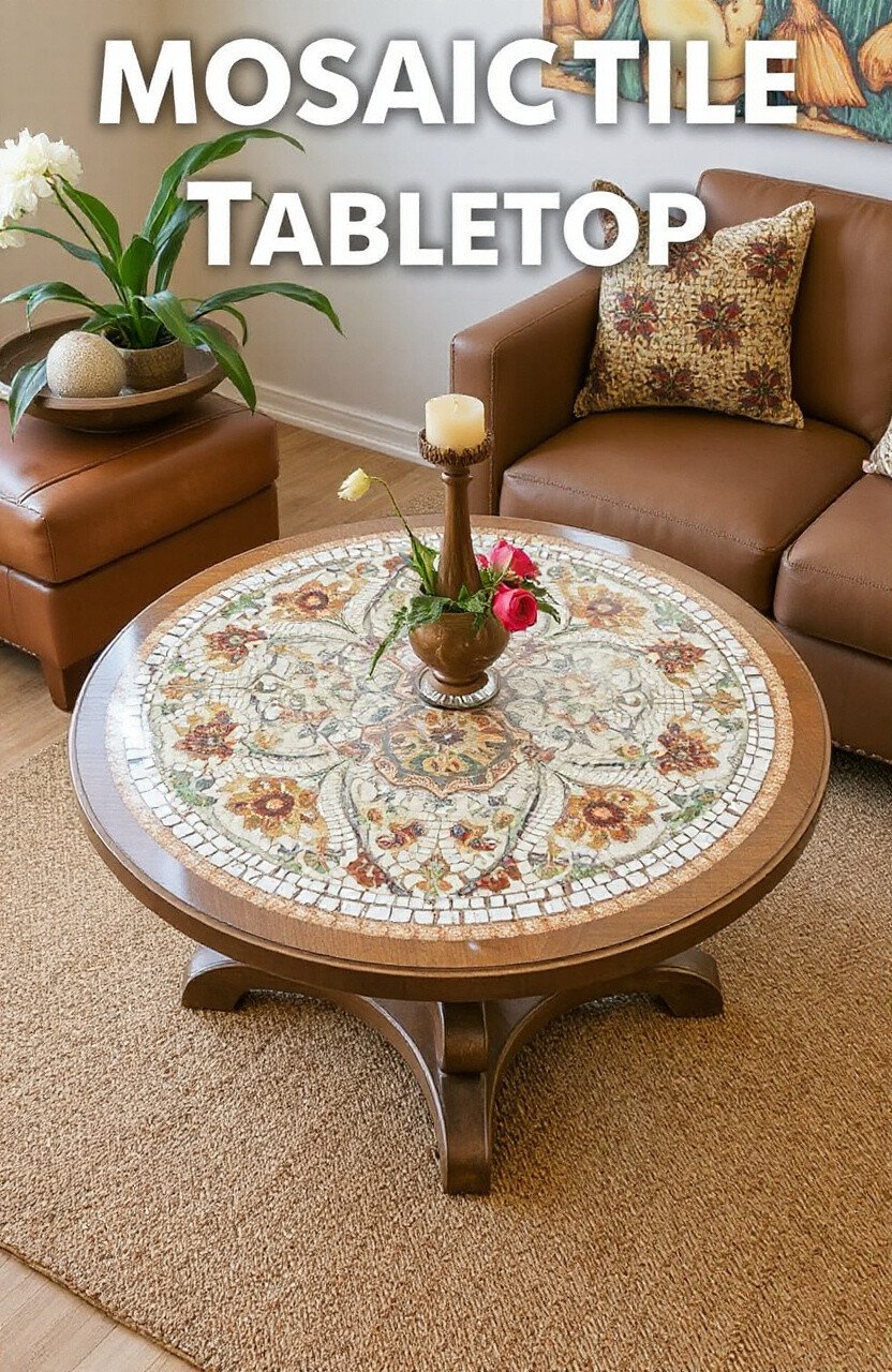 Create a unique conversation piece by designing a mosaic tile tabletop. Whether it’s for a coffee table or a dining table, this art form adds a splash of color and character to your furniture. You can use leftover tiles from other projects, making it a sustainable choice.
